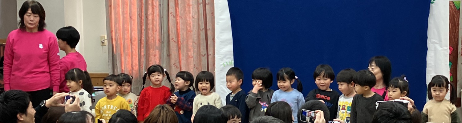 たんぽぽ組さん(写真は一部)の♪きょうはなんのひ♪(森のくまさんの曲で替え歌オリジナル)の歌から始まり″はじめのことば″を・・・大勢の前で元気よく言えました。