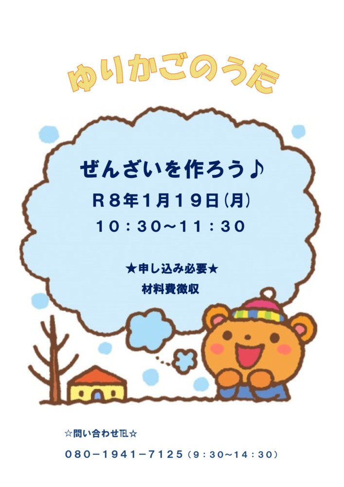 1月 ゆりかごのうた 2025.12.22 ゆりかごブログ こちらの記事も読まれています。R7年度 1月の予定12月 ゆりかごのうたR7年度 12月の予定11月 ゆりかごのうたR7年度 11月の予定10月 助産師さんと話そう 前後の記事 前の記事 R7年度 1月の予定 お気軽にお問い合わせください! 083-922-71267時~19時(18時から延長保育) ソーシャルボタン Tweet こちらの記事も読まれています。6月 ゆりかごのうた10月 ゆりかごのうたR4年度 11月の予定12月 ゆりかごのうたR6年度 8月の予定3月のゆりかごのうたに参加された方へ ゆりかごのうた 手形足形アート キーホルダー作りにご参加をありがとうございました。 3月19日(水)からゆりかごにて、キーホルダーを […]