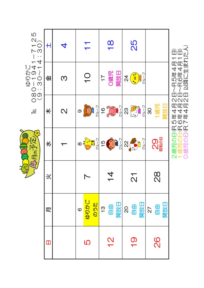 今年度は6日からスタートします。このようにホームページの【ゆりかごブログ】で月の予定と講座(ゆりかごのうた)の詳細をお知らせします。